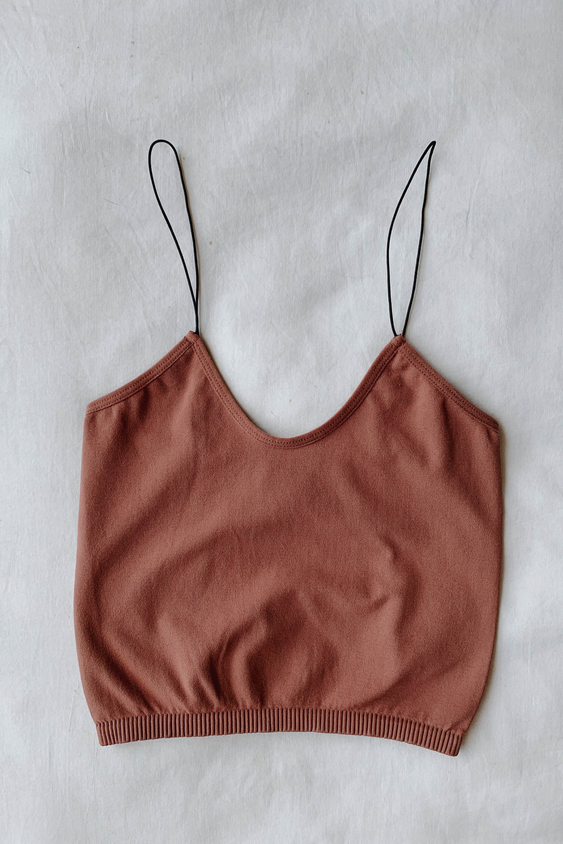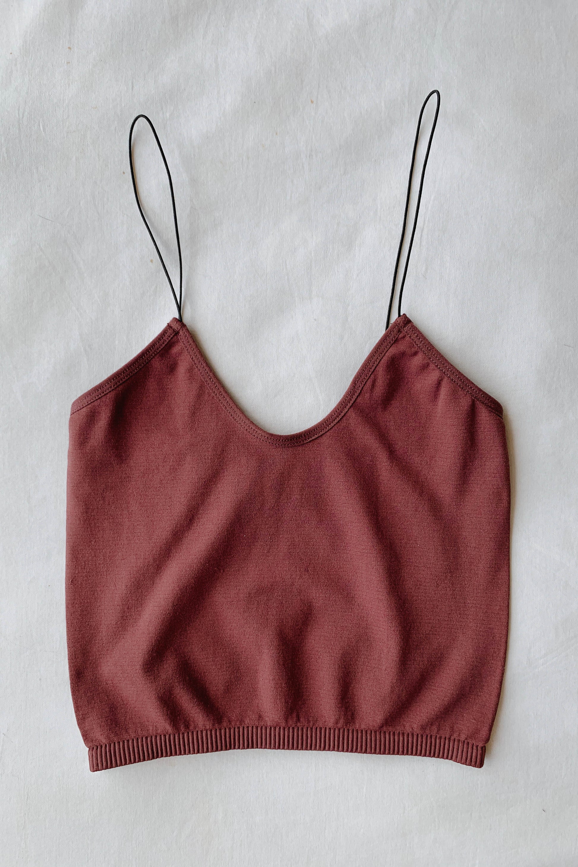 Sometimes you just need that perfect item to throw on without having to put too much thought into it. If that's you, look no further! This seamless elastic brami features spaghetti straps with ribbed bottom. Wear it under your fave top or on its own - there's no wrong way! Available in two colorways: rust & wine.