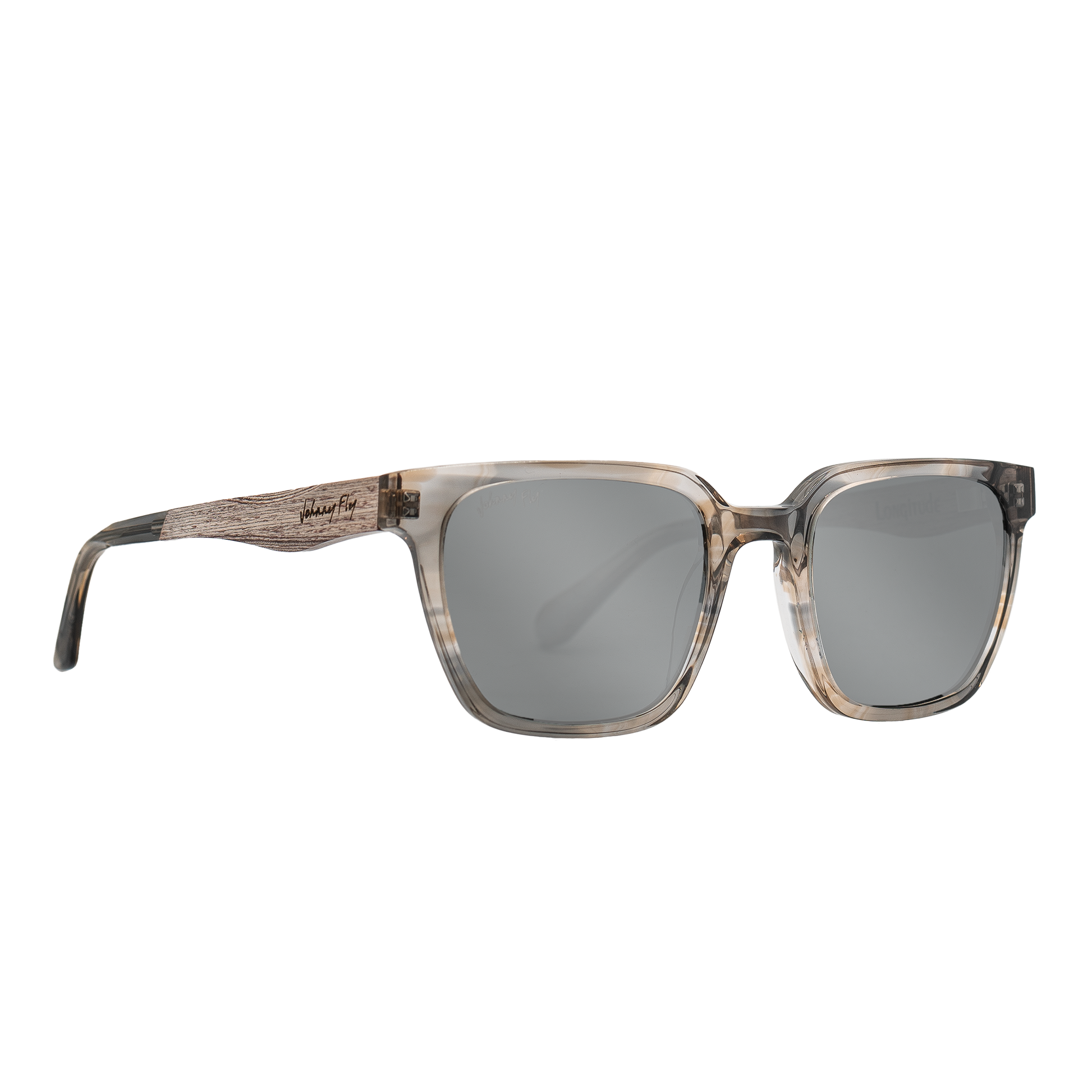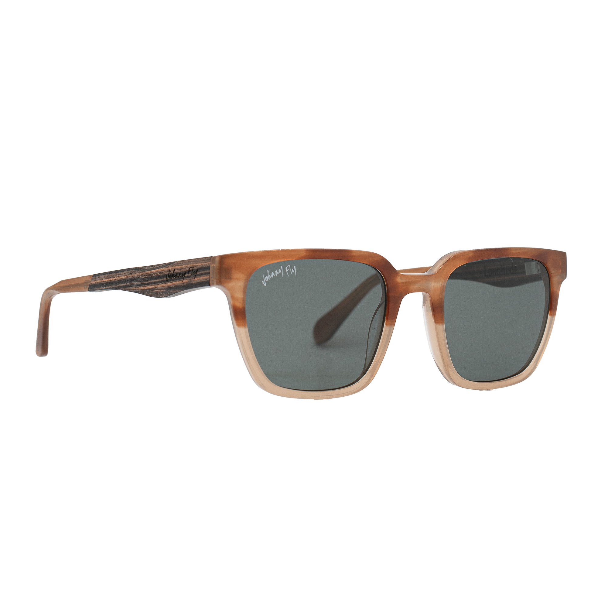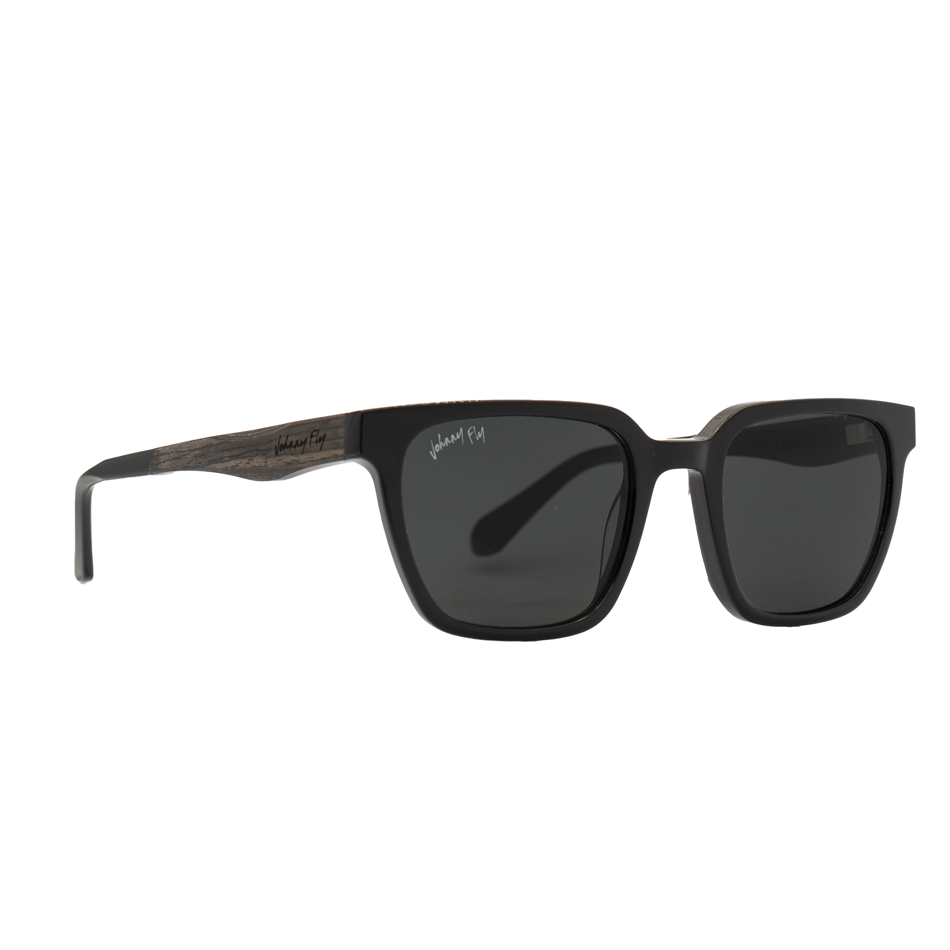 The Longitude: A humble approach to a high fashion look. This frame features our signature wood arms paired with an acetate front, medical grade spring hinges and polarized lensing that makes them Johnny Fly.