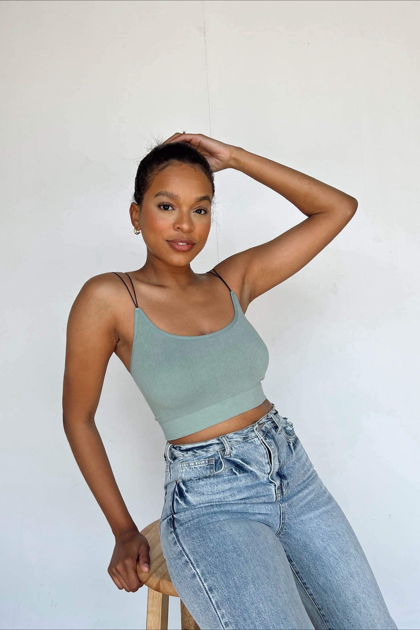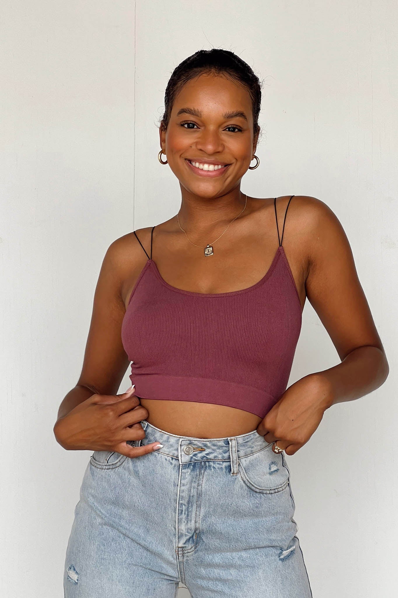This bra-meets-cami top is definitely something we'll be wearing on repeat. This closet staple is perfect under a chunky knit sweater, oversized jacket, mini cardigan, or just on its own. The material is stretchy, seamless, and so comfortable. We are obsessed with this one and the thin double straps are our favorite part! This brami comes in black, white, ivory, stone, mauve, sage, camel and tan.