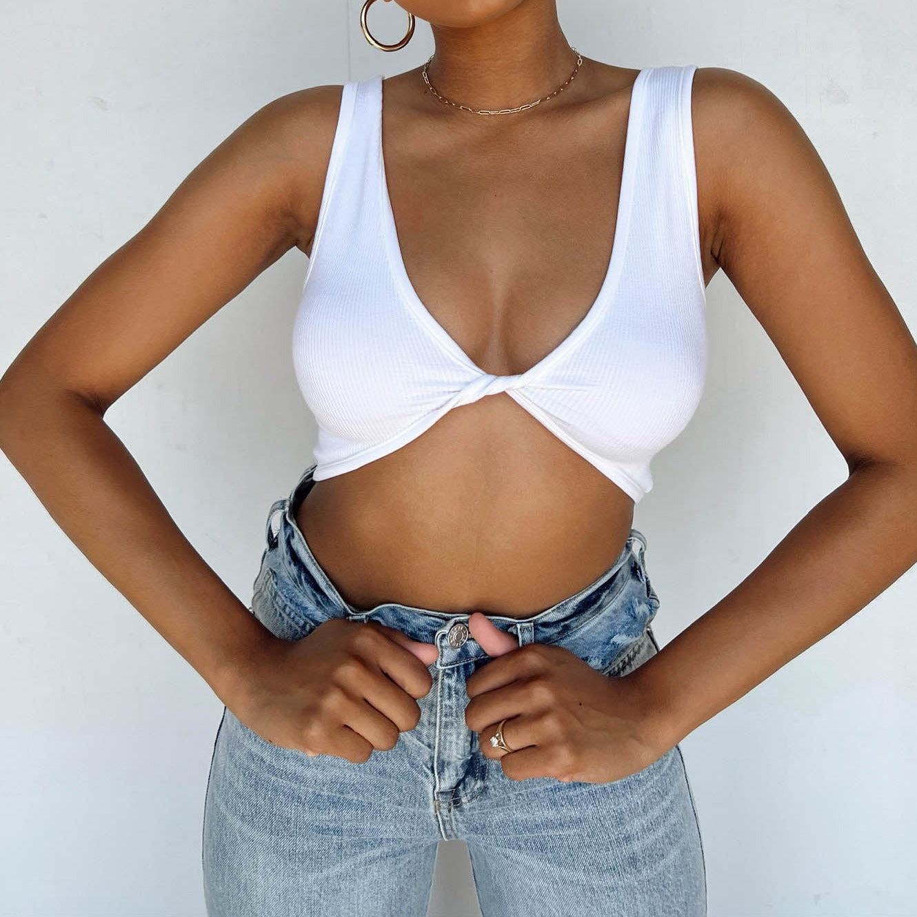 This reversible twist crop brami is the perfect piece to wear underneath your favorite tops this summer and fall. Featuring a seamless fabric, you'll forget you're even wearing anything. Item fits true to size and comes in brown, white, black, and mauve (an ashy gray shade.)